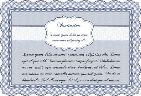 Vintage invitation template. Nice design. With guilloche pattern and background. Detailed.