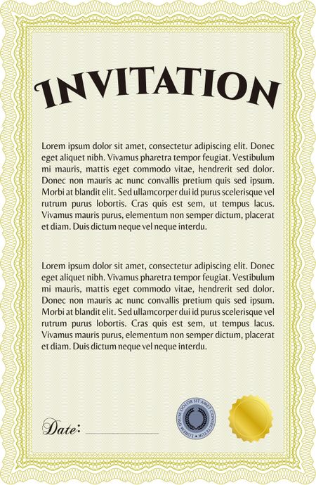 Vintage invitation template. Retro design. Vector illustration. With guilloche pattern.