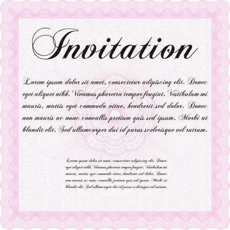 Vintage invitation template. Vector illustration. Elegant design. With guilloche pattern and background.