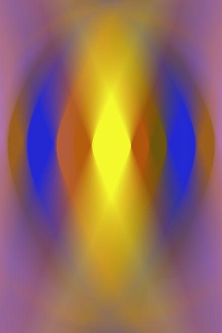 Warm varicolored abstract of mysterious yellow diamond shape at the center of an oval with several layers, all with radial blur