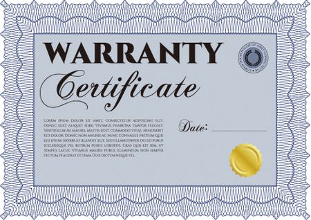 Warranty Certificate. Complex design. Printer friendly. Detailed.
