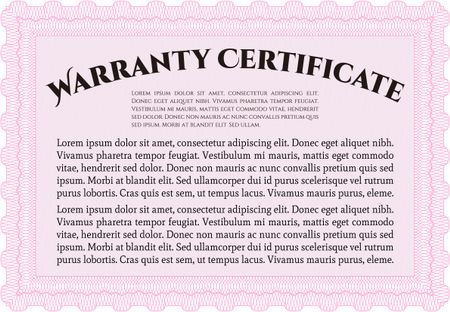 Warranty Certificate. Detailed. Complex design. Printer friendly.