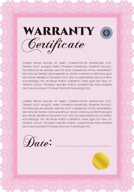 Warranty Certificate. Detailed. Printer friendly. Complex design.