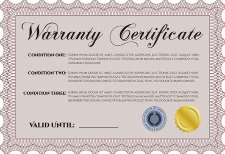 Warranty Certificate. With sample text. Complex frame design. Very Detailed.