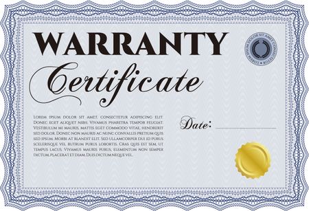 Warranty Certificate template. With background. Cordial design. Detailed.