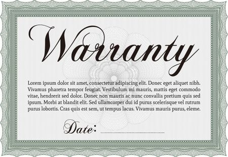 Warranty Certificate template. Complex frame design. Vector illustration. It includes background.