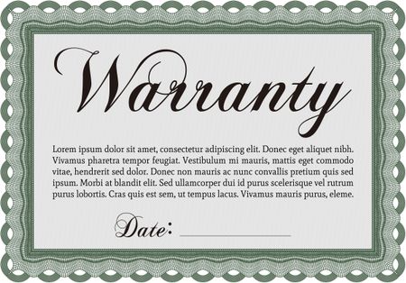 Warranty Certificate template. Detailed. Easy to print. Cordial design.