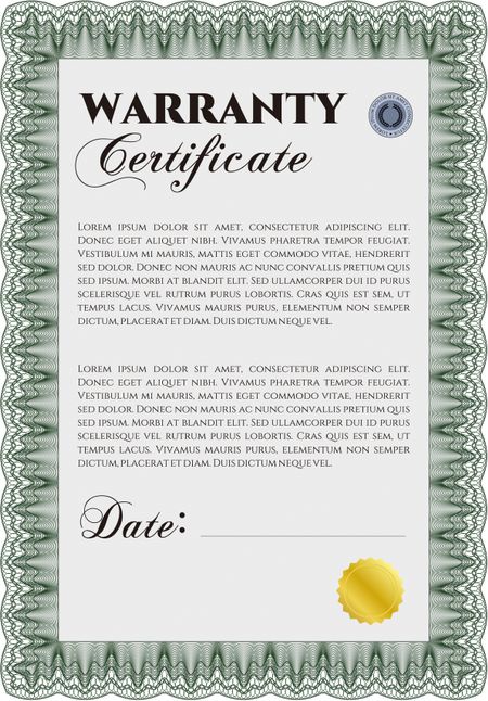 Warranty Certificate template. Detailed. Nice design. Easy to print.