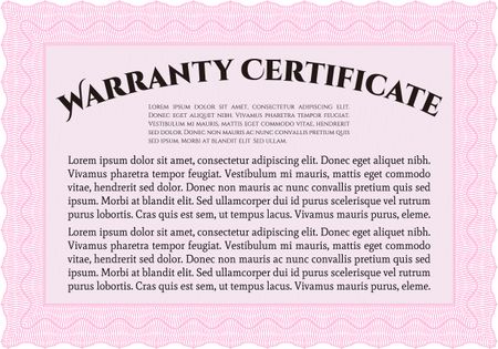 Warranty Certificate template. Easy to print. Cordial design. Detailed.