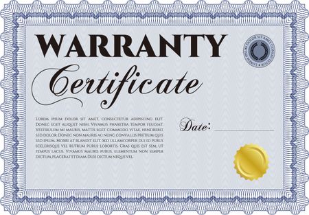 Warranty Certificate template. Perfect style. Complex border. With sample text.