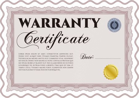 Warranty Certificate template. Retro design. It includes background. With sample text.