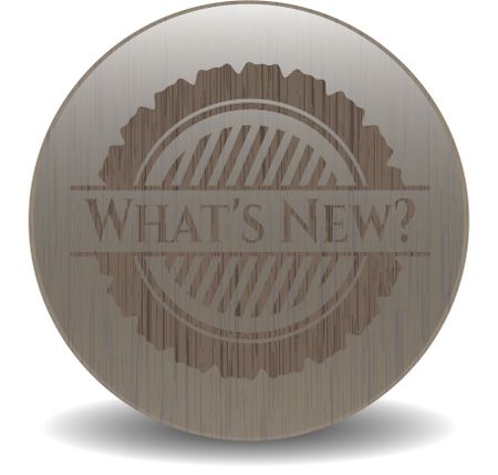 What's New? badge with wooden background