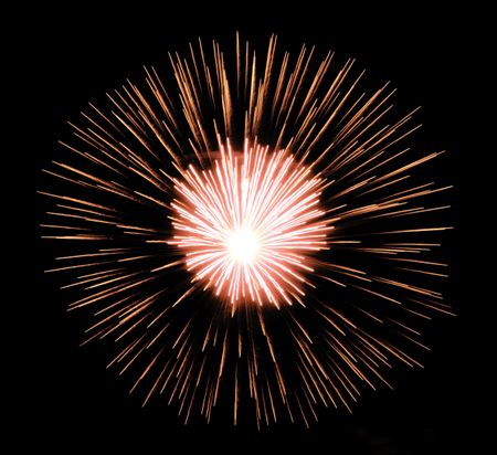 White-hot burst at core of reddish-orange fireworks ball (more in my gallery)
