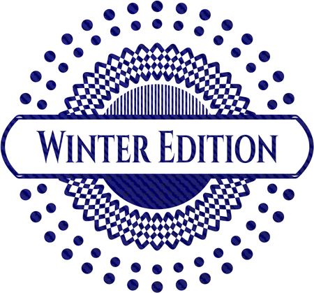 Winter Edition badge with denim background
