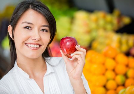 Woman buying organic apples at the supermarket