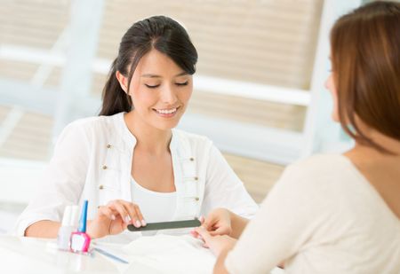 Woman doing a manicure at the nail salon