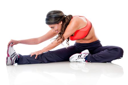 Woman doing stretching exercises - isolated over a white background
