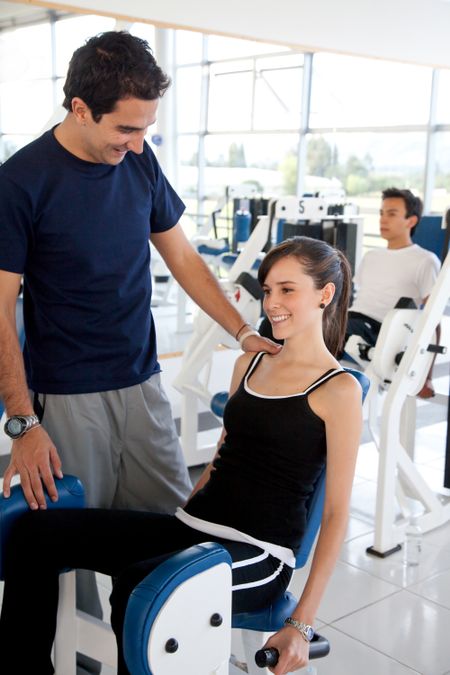 Woman exercising at the gym with her trainer