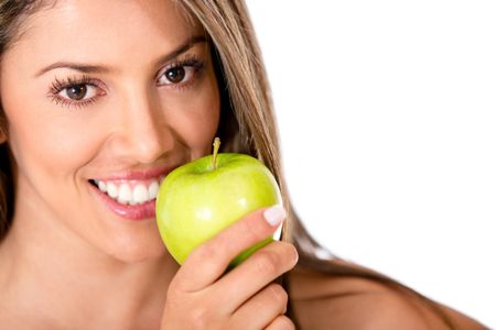 Woman following a healthy diet - isolated over a white background