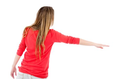 Woman hitch-hiking - isolated over a white background