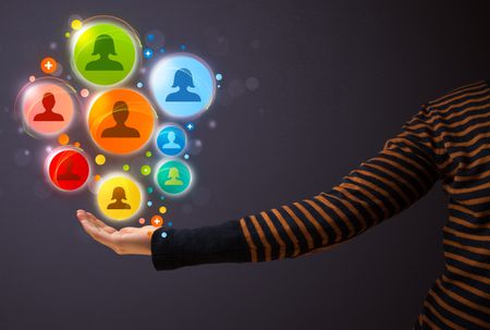 Woman holding colorful social network icons in her hand