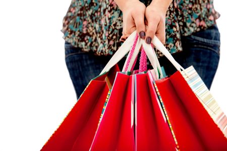 woman holding some shopping bags isolated over a white background