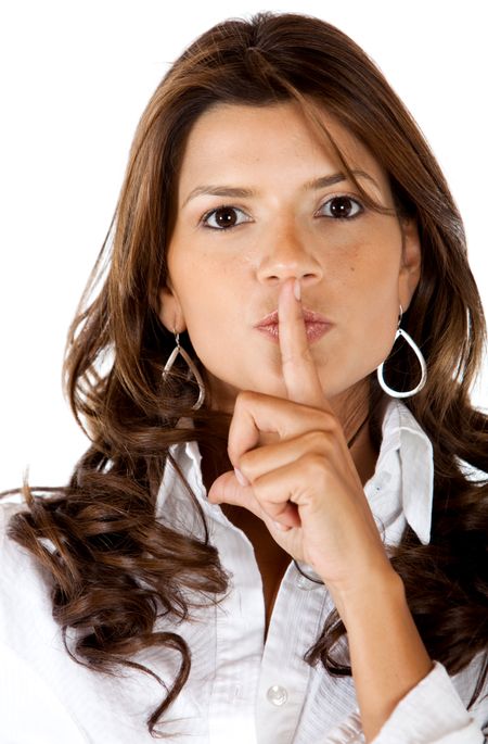 Woman with a Keep it quiet expression - isolated ovr a white background
