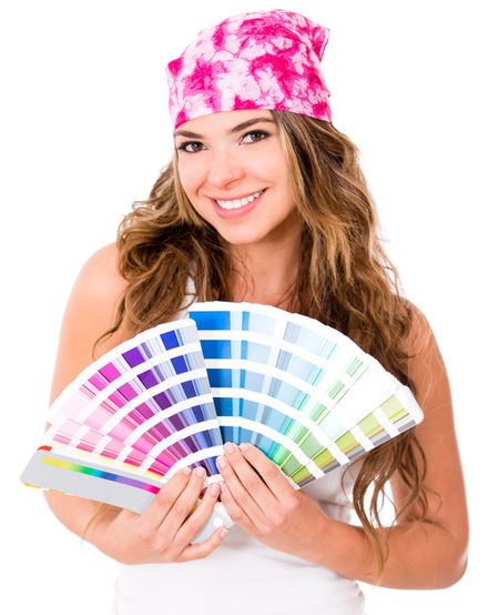 Woman with a Pantone - isolated over a white background