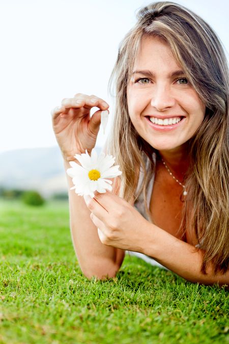 Woman playing girly games with a flower at the park