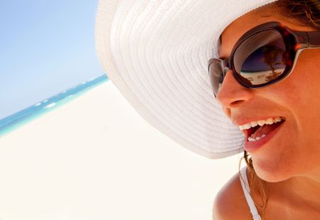 Woman portrait at the beach looking very happy
