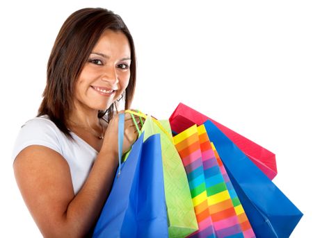 Woman with shopping bags isolated over a white background
