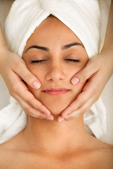 Woman at a spa getting a facial treatment