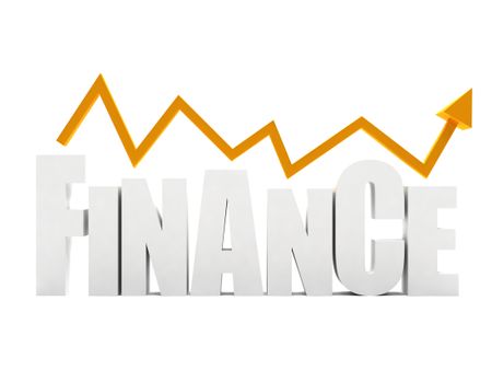 Word 'finance' in 3D and an arrow going up isolated