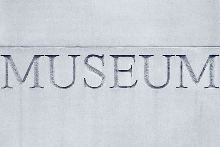 The word "museum" engraved in capital letters in exterior wall