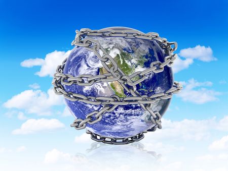 The world in chains over a blue sky