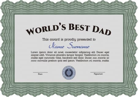 World's Best Dad Award. Detailed. Printer friendly. Complex design.