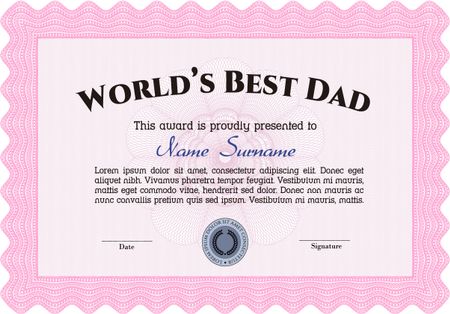 World's Best Dad Award Template. With quality background. Artistry design. Border, frame.