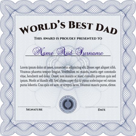 World's Best Father Award Template. Customizable, Easy to edit and change colors. Complex background. Lovely design.