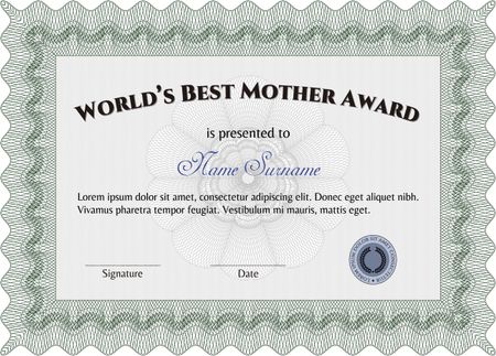 World's Best Mom Award Template. Beauty design. Border, frame.With background.