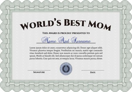 World's Best Mom Award Template. Detailed.Retro design. Printer friendly.