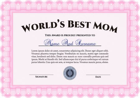 World's Best Mother Award Template. Customizable, Easy to edit and change colors. Complex background. Excellent design.