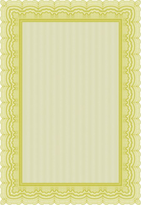 Yellow Diploma template or certificate template. Beauty design. With quality background. Vector pattern that is used in money and certificate.