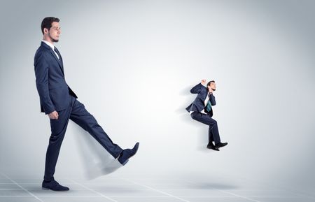 Young businessman fired cruel and aggressive by his boss with white background