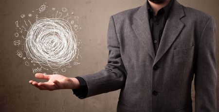 Young businessman holding chaos concept in his hand