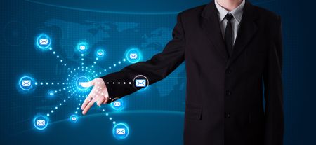 Young businessman pressing virtual messaging type of icons