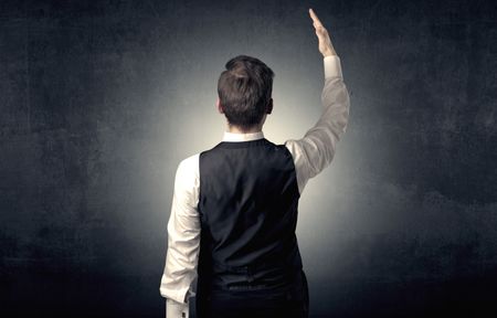 Young businessman standing and thinking alone