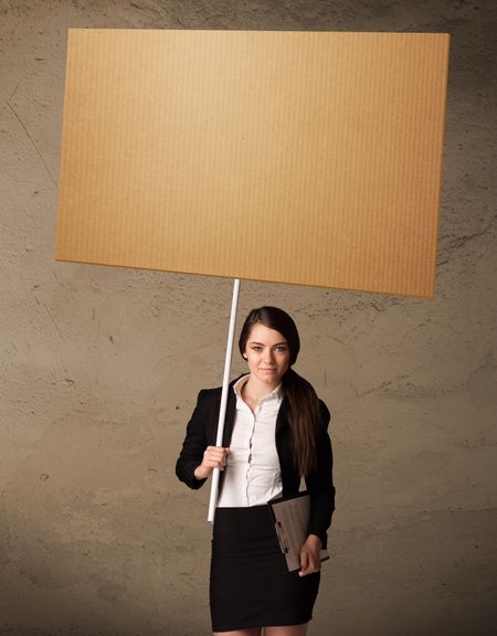 Young businesswoman holding a blank cardboard