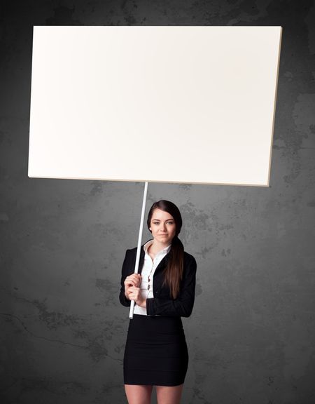 Young businesswoman holding a blank whiteboard