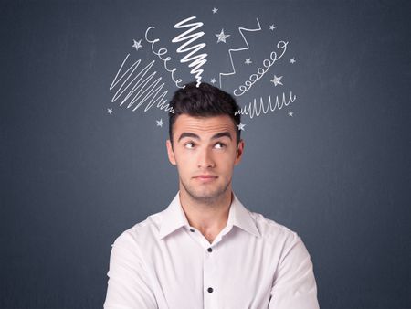 Young casual businessman with white scribbles around his head