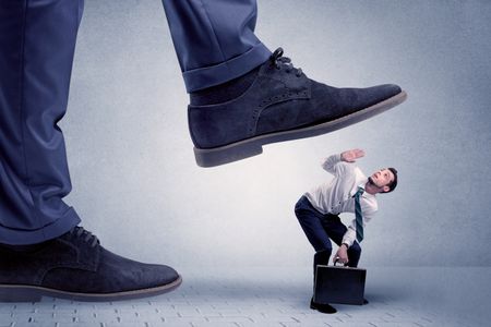 Young handsome businessman getting crushed by a big formal shoe
